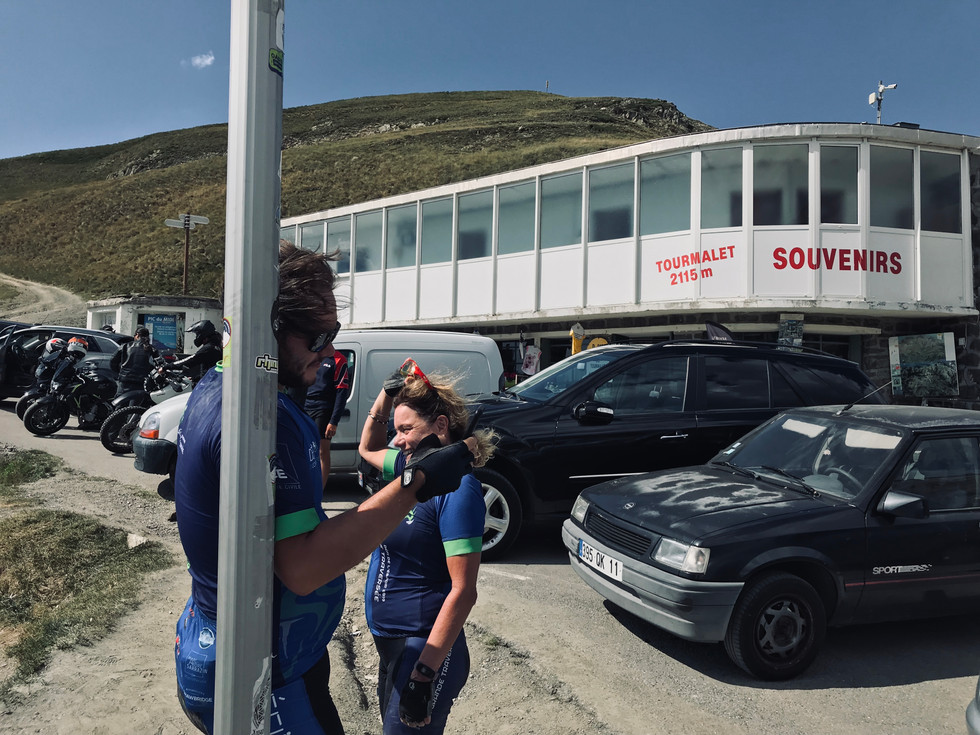 Dernier virage en épingle et ce qui apparaît devant nous est cette fameuse pente de 15%, inspiré par la musique qui jouait sur notre Haut-parleur bien fixé à notre tandem, j’entends et je sens Isabel qui donne tout afin de terminer cette montée en toute beauté, Julien lui est déjà rendu au sommet ! Ne me demandez pas le temps que cela a pris pour cette section, ne me demandez pas de quelle façon on s’y est pris pour passer cette section à 15%, la seule chose que je me rappelle est que beaucoup de gens nous applaudissaient et je me souviens juste d’avoir crié très fort lorsque j’ai vu le sommet et l’affiche du Tourmalet, possiblement parce que je venais de vivre ma plus belle journée de vélo à vie, je prenais conscience de cette chance, cette opportunité que j’avais eu de grimper le Col du Tourmalet avec ceux que j’aime le plus au monde, Isabel et Julien.